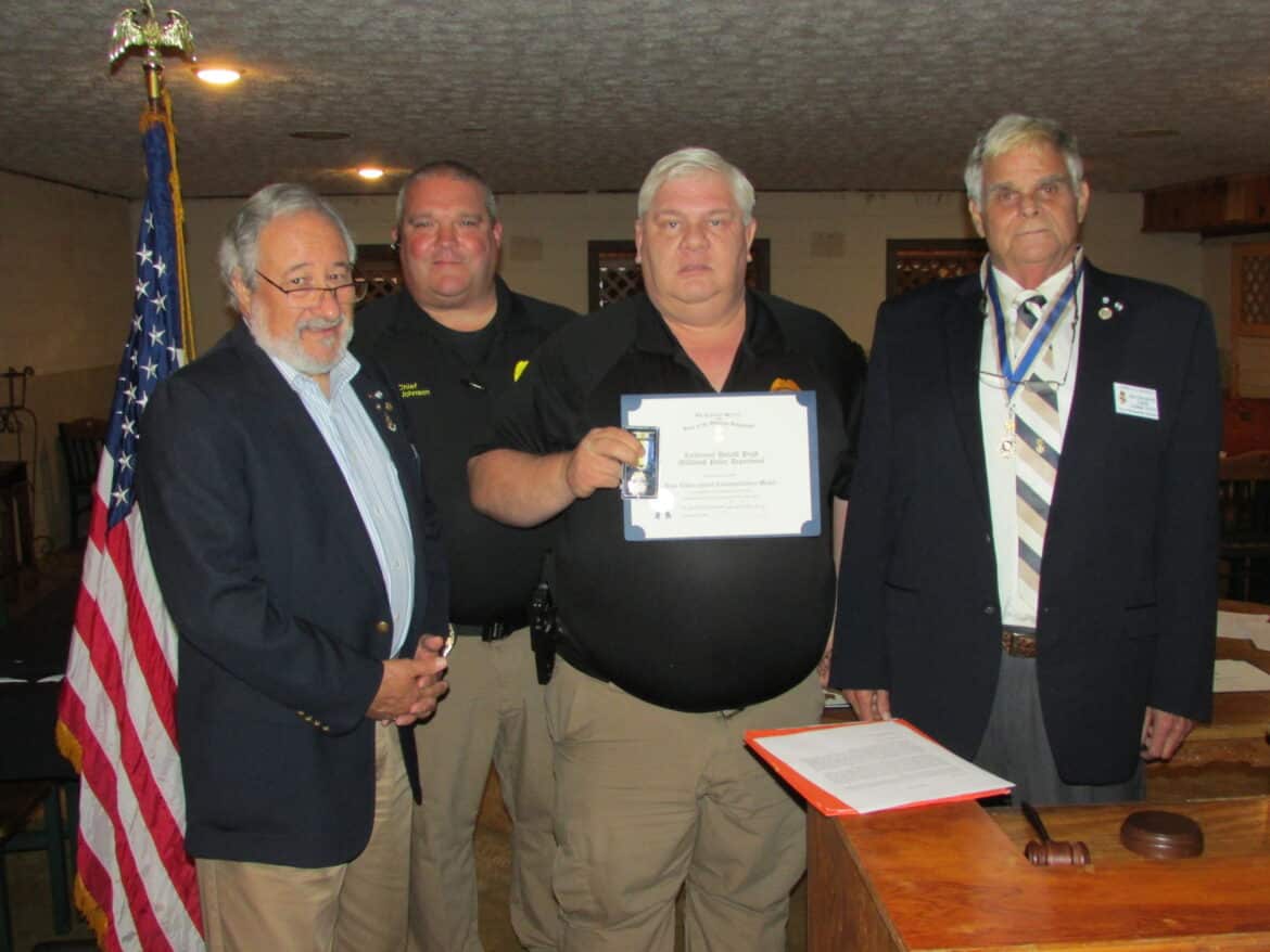 Top Photo: From left is Past President and Public Service and Heroism Committee Chairman Mike Winstead, Millbrook Police Chief P.K. Johnson, Lt. Don Pugh and Chapter President Joe Barker.