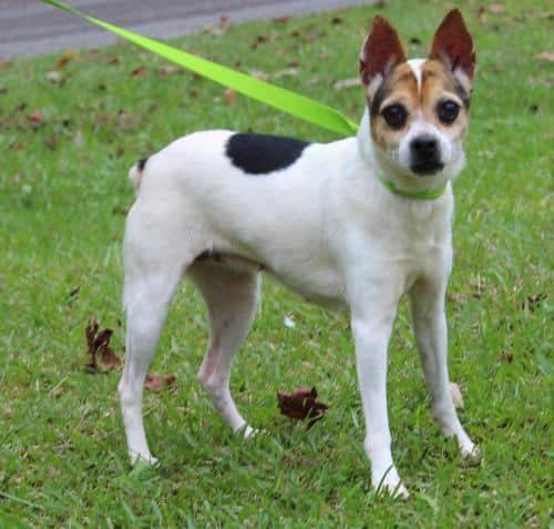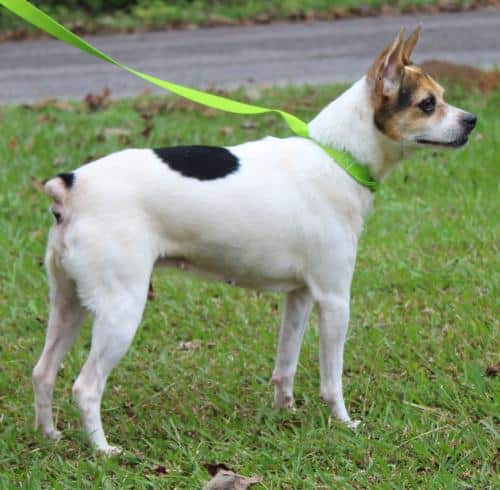 KK is a 9-year-old female Rat Terrier mix who must be spayed before she is adopted. She was an owner turn in because her family is moving and couldn’t take her. She is a cute girl who is white with black and brown markings. KK only weighs 14 pounds so she is considered to be a small adult dog. Don’t let her age fool you! She may be a senior in years but she is quite active and playful. This little cutie would be fine with children and other dogs. KK might need to be fed separately from other dogs because she does have a bit of food aggression. This is just an awesome and precious little girl. KK is pretty, sweet, and ready to find a new forever home.