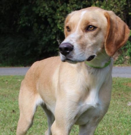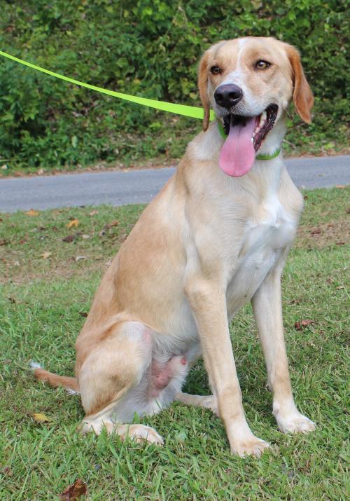 Flash is a 3-year-old male Lab/Bird Dog mix who has already been neutered. He was an owner turn in to PAHS because his owner is taking care of an elderly parent and couldn’t keep him. Flash is light tan with white markings and he is a very good looking fellow. He currently weighs 56 pounds so he is medium to large size adult dog. Flash is very well behaved; he is leash trained, and crate trained. He loves water and he loves playing outside with his sister, Buttercup. Flash is sweet, loving, and affectionate. This friendly guy would do well in a home with other dogs and children. We just can’t say enough about what a nice dog Flash is. He is everything you could want in a new family member who would fit right in just about anywhere.