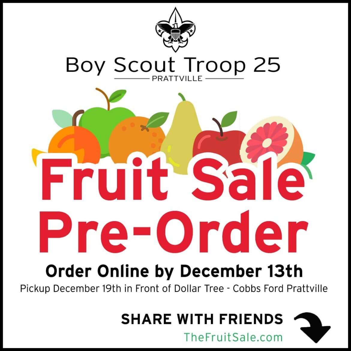 Prattville Boy Scout Troop 25 is selling fruit again this year. Due to COVID-19 we will presale online only for pickup at a later date.