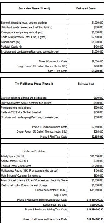 Phase 2 will be Field House and Triangular baseball fields in Phase 2. Phase 3 is the Stadium along with baseball, track and field/soccer/football areas. Those could potentially be combined, Beyer said.