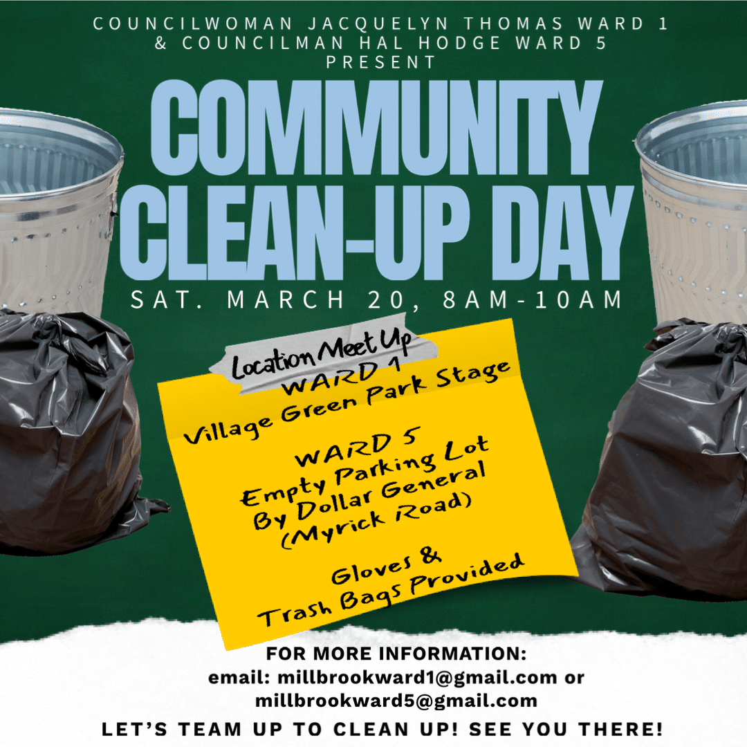 Millbrook Community Clean-Up Day Coming March 20; Hosted by Ward 1, Ward 5 Council Members