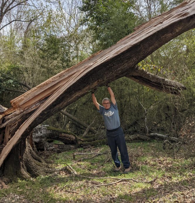 Top Photo: Just one of the huge limbs from a once mighty Oak Tree that was damaged during recent storms.
