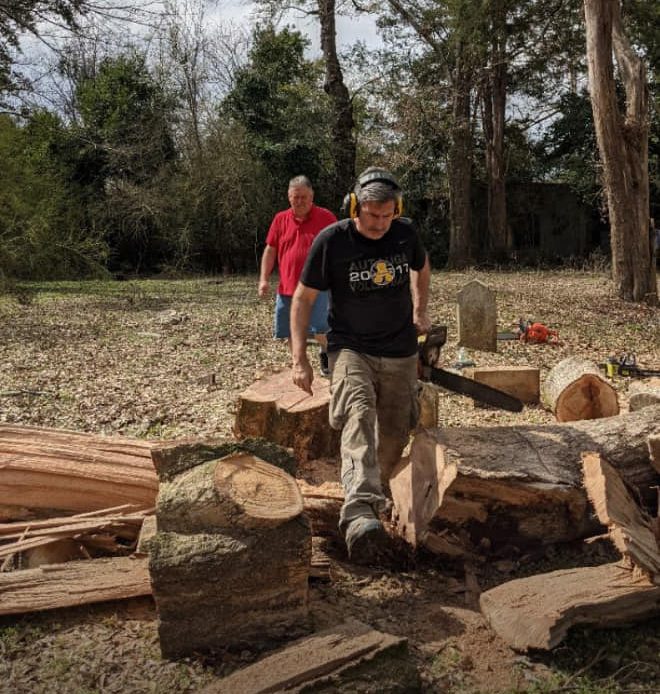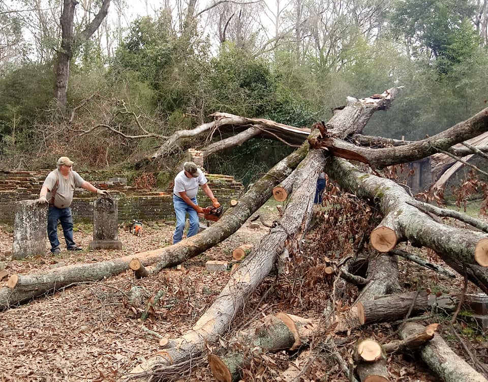 We thank the following OAHS members, Allen Herrod , John Dennis , Ed McBride , Jennifer Shackelford McBride , Barbara Ware Russell and Larry Caver, for their participation in this massive cleanup project. We also thank OAHS member Beth DeBusk for providing snacks and bottled water.