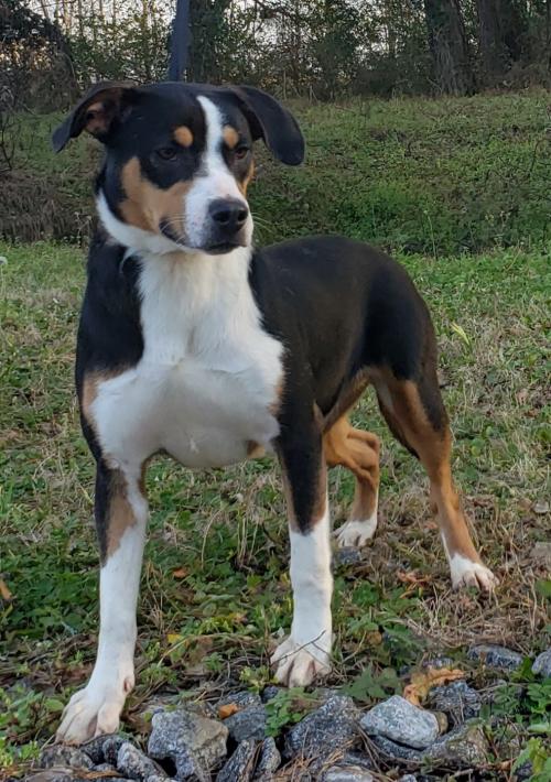 Lady is a striking three-year old female mix, about 45 lbs. She was sadly abandoned by her owner and is a bit shy at first but very sweet and loving. Lady is a higher energy dog, good with other dogs and cats and wants a family to call her own. Our adoption fees are $100 for dogs and $50 for cats under one-year-old; cats over one-year-old can be adopted by approved adopters for a fee of their choosing. This adoption fee completely covers the mandatory spay or neuter, basic immunizations, de-worming, microchip, heartworm check for dogs, rabies vaccination if old enough, free health exam with your participating veterinarian.