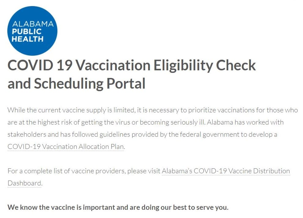 As of April 5, 2021, all individuals age 16 and older are eligible to receive the COVID-19 vaccine in Alabama.