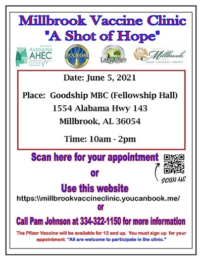 Goodship Missionary Baptist Church, Lake Elam Missionary Baptist Church, the City of Millbrook and the Alabama AHEC program are teaming together to make the vaccine available.