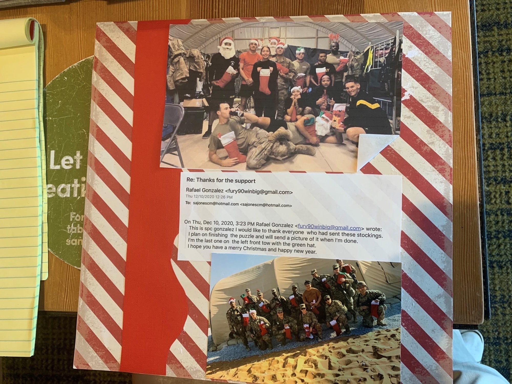 Jones has 32 years of military service from 1982-2014, participating in Desert Storm, the Liberation of Kuwait, Iraq Freedom and Operation Enduring Freedom as a bridge inspector for the Army Engineering Brigade. He knows what it’s like to be in the midst of imminent danger. That helped to fuel his passion for the Christmas stocking project, which brought joy to hundreds of people in dangerous areas.