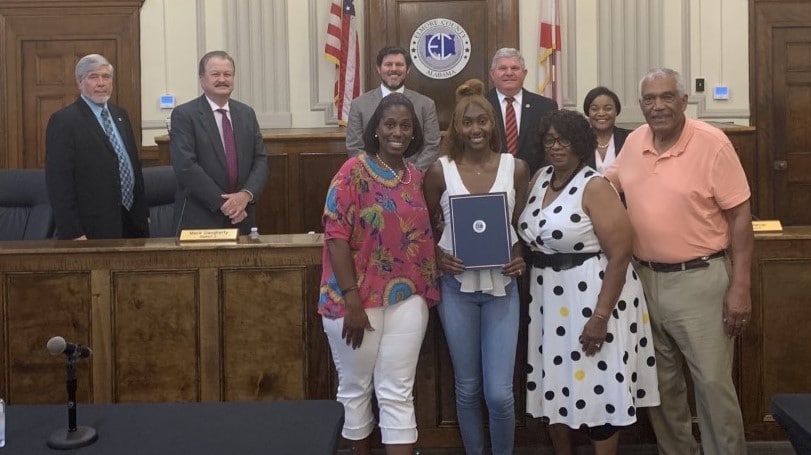 Top Photo: Morgan Causey and her family at the Elmore County Commission Meeting Monday.