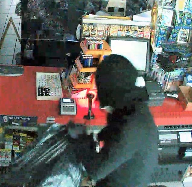 On 06/16/2021 at approximately 2:55 am, an unknown suspect dressed in dark clothing with a hoodie and surgical mask covering his face, threw a car jack through the front window of the business. The suspect then entered and stole several hundred dollars’ worth of tobacco products. Upon leaving the business the suspect fled northbound towards County Road 85.