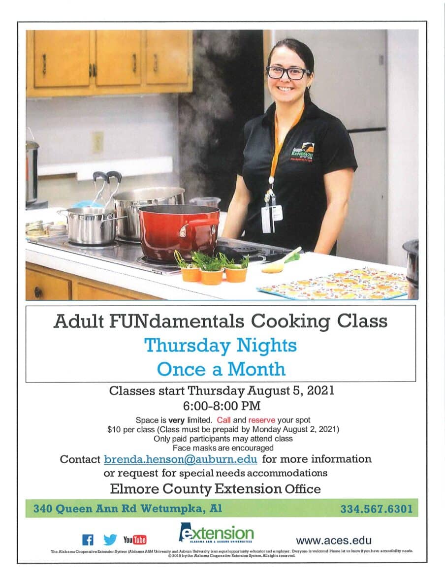 Call 334-567-6301 to reserve your spot. Space is extremely limited, so call soon. Cost is $10 per class. August class prepayment is due by August 2, 2021.