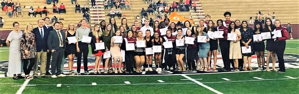 This past spring, Prattville High School junior and senior students took 321 AP tests and made passing scores on 162 of these tests. Pictured here are some of the students who earned passing scores and the teachers who teach AP classes. They were recognized prior to a recent Prattville High School football game.