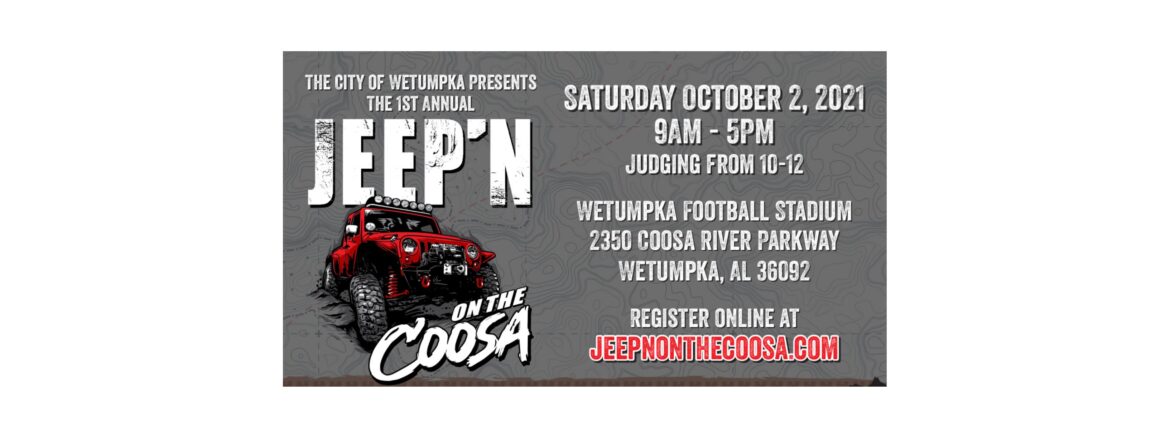 Come join us on October 2nd at the Wetumpka Sports Complex for the First Annual Jeep’n on the Coosa. All proceeds will go to the Elmore County Food Pantry! Admission is $5 per person (children under 6 are free) and $40 per Jeep entering into the judging.