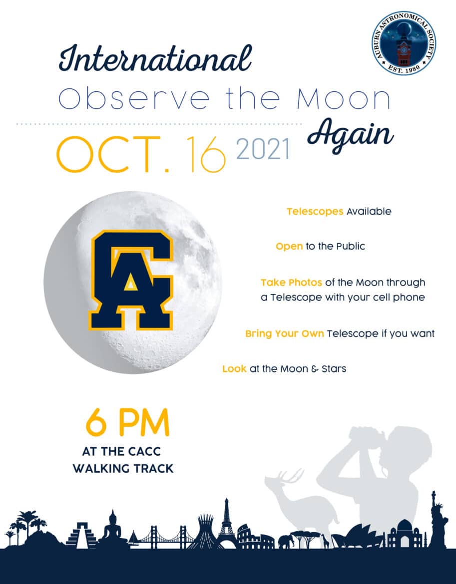 You are invited to the “International Observe the Moon Again” at the CACC Walking Track at 6 p.m. in Alexander City.