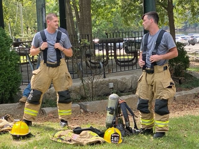 The firefighters demonstrated to the crowd of what it’s like with their full turn out gear on.