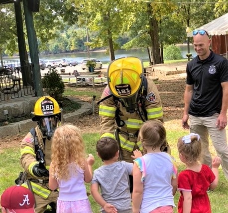 The Wetumpka Fire Department came to share with the children and their parents what to do in case of a fire. They also showed the children what a fireman looks like with all of their turnout gear on as well. The children had the opportunity to tour the large Wetumpka Fire truck at the park, which was a big hit.