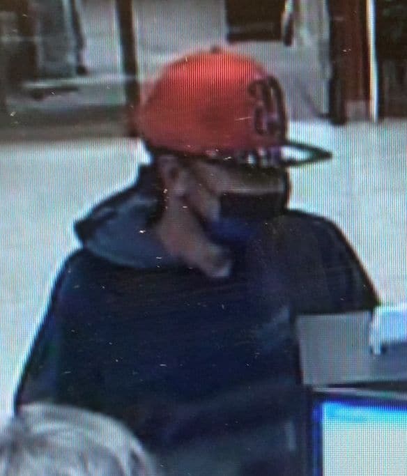 The chief gave the following description of the thief: Light complexioned black male, wearing a red Chicago Bulls cap with number 23 embroidered in gold, black and blue lined facial mask, black or navy-blue hoodie, black pants and shoes. Stood approximately five feet six inches tall, weighed between 130-140 pounds. Appeared to be between twenty to twenty-five years of age.