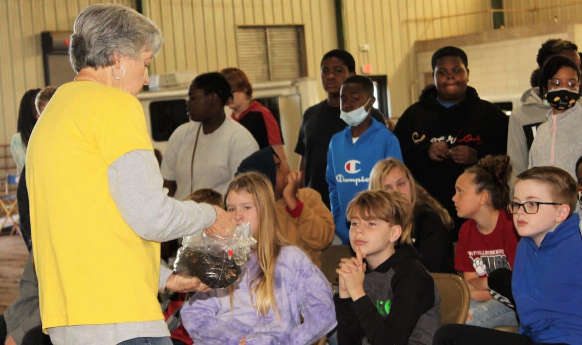 Matt Sorrells of the Alabama Forestry Commission gave the students a lesson on what type of products come from the forest, including their snack and pizza boxes. “I hope the kids have learned about forestry and wildlife and the proper values they should hold for those things,” Sorrells said.