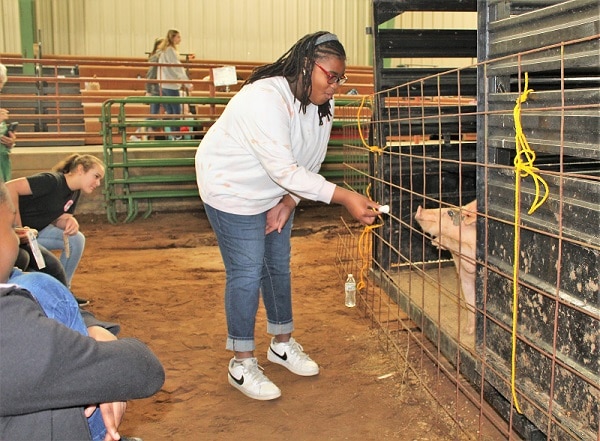 John Colquitt helps out with the Future Farmers of America (FFA) and brought a pig for a demonstration. He said pigs are a hard animal to herd, so he bribes them with marshmellows. He said pigs are a multi-billion industry that provide people with more than just pork. “There are so many vitamins and minerals that come from pigs,” he said. “Insulin can be extracted from hogs for use in humans and they are even used for open heart surgery patients.