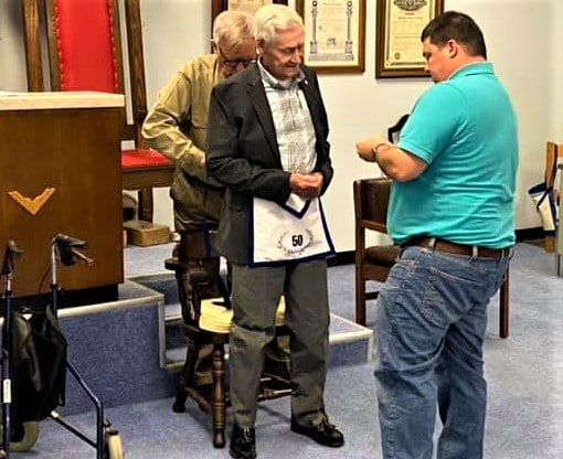 Past Commanders honored/remembered by Masonic Lodge. Each Past Master present was presented with a Past Master Lapel Pin.