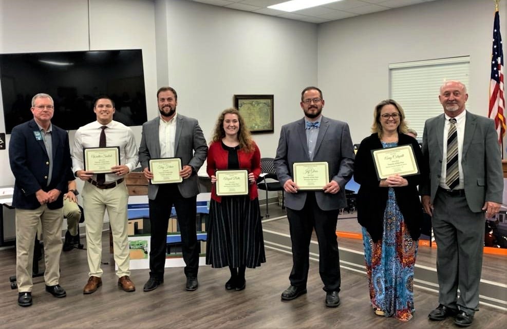 Teacher of the Year awards for the 7th – 12th grade Secondary are: Walter Porter (EMS), Rachael Jones (HMS), Alicia Diggs (MMS), Adrinnia Strum (WMS), Walter Snelick (ECHS), Trey Fetner (HHS), Abigail Betts (SEHS), Jeff Glass (WHS), and Amy Colquitt (ECTC).