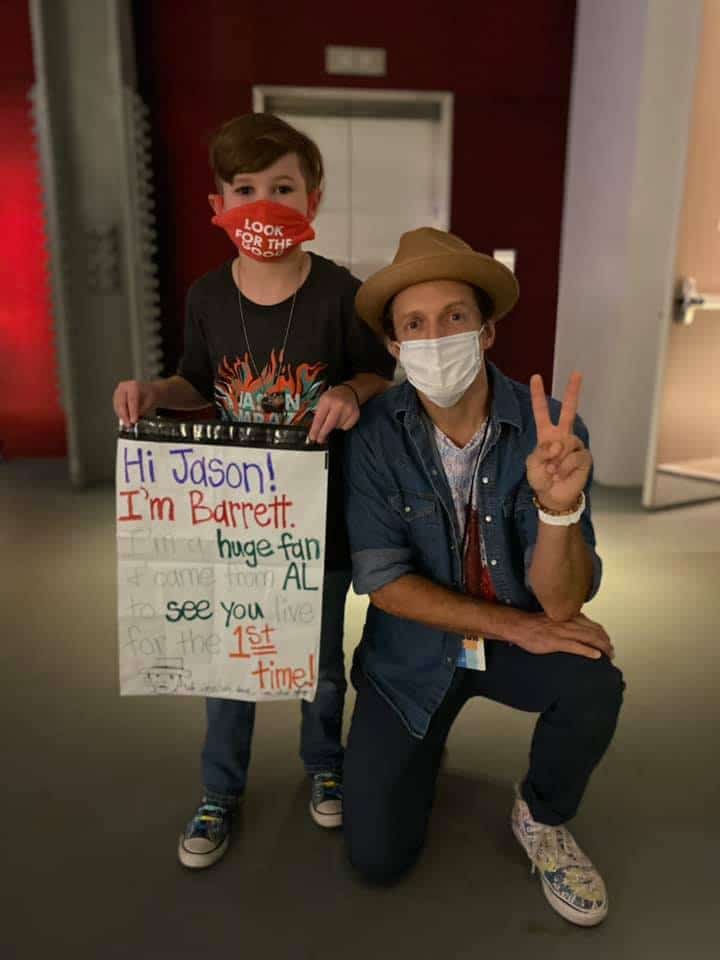 Barrett was seated with his Mom near the front during the recent concert, and was called out by Mraz. Barrett was holding a poster referring to that night being his second, FIRST Jason Mraz concert.