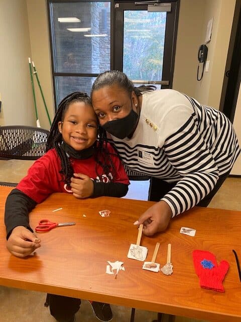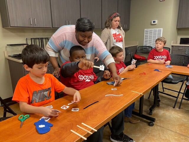 Then all of the second grade students went into a classroom with their teacher and staff from the Alabama Nature Center to make a take home ornament. Each student was able to make a mitten to take home so they can tell their family what the mitten was all about.