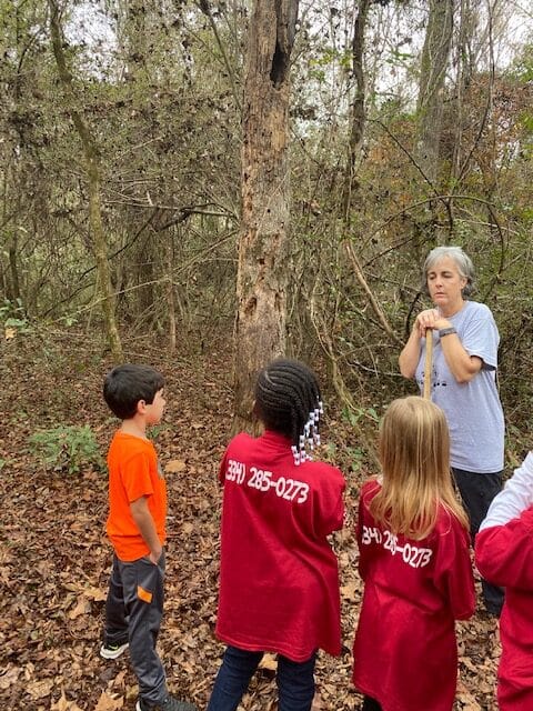Each of the four teachers had an Alabama Nature Center staff member who walked with them to their activities. The first activity consisted of listening to a story called “The Mitten.” It is written and illustrated by Jan Brett. A staff member of the ANC dressed up and portrayed a person from the story named “Baba,” Nicki’s grandmother. “The Mitten” is a Ukrainian folk tale about a boy’s grandmother who knitted pure white mittens for him, even though she was afraid he would lose them in the snow. It’s a great story for young readers such as the second grade children that attended the field trip. At the end of the story, the staff was able to ask the students questions about the story.