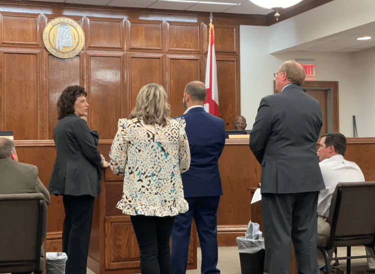 Prattville Chamber President Patty VanderWal introducing the local businesses to the Autauga County Commission.