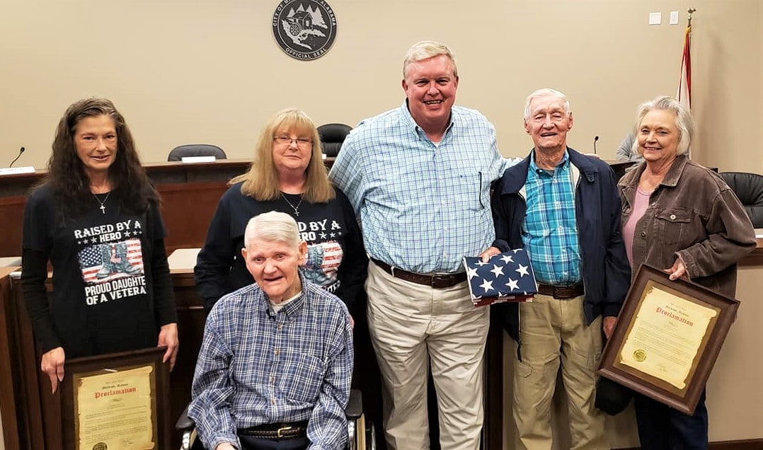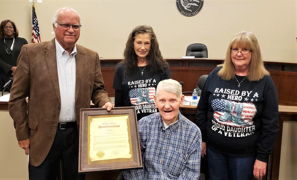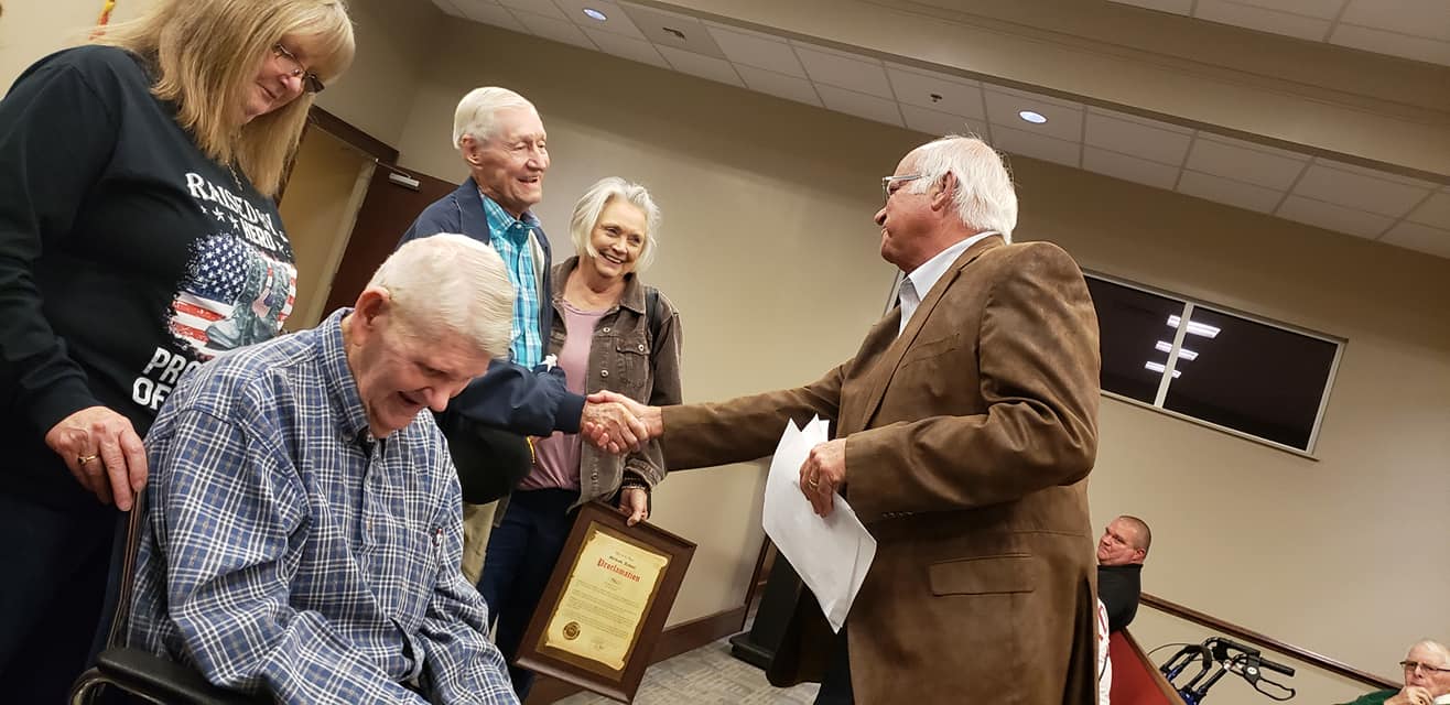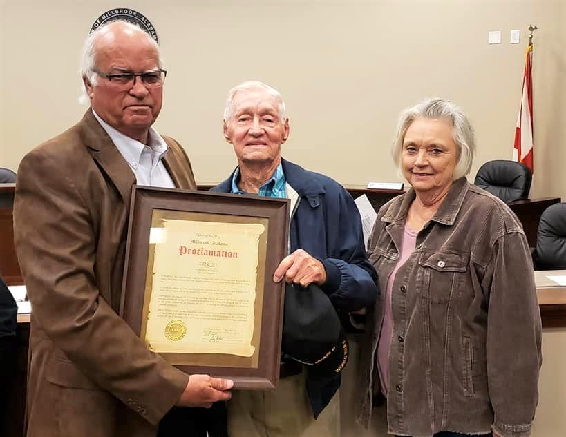 Two World War II Veterans from Elmore County have been shown quite a bit of love and gratitude recently. Eugene Thomas Beasley, of Millbrook, and Carl Edwards, of Elmore, were recently honored by the Hampden Sidney Lodge #67 of Millbrook. On Tuesday night during the regular Millbrook City Council the men, who are both 97-years-young, were invited back for a special presentation from Millbrook Mayor Al Kelley.