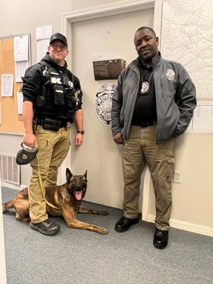 Top Photo: Cpl. Tim Thornton, his K-9 Partner Ivo, and Eclectic Police Chief Robert Head.
