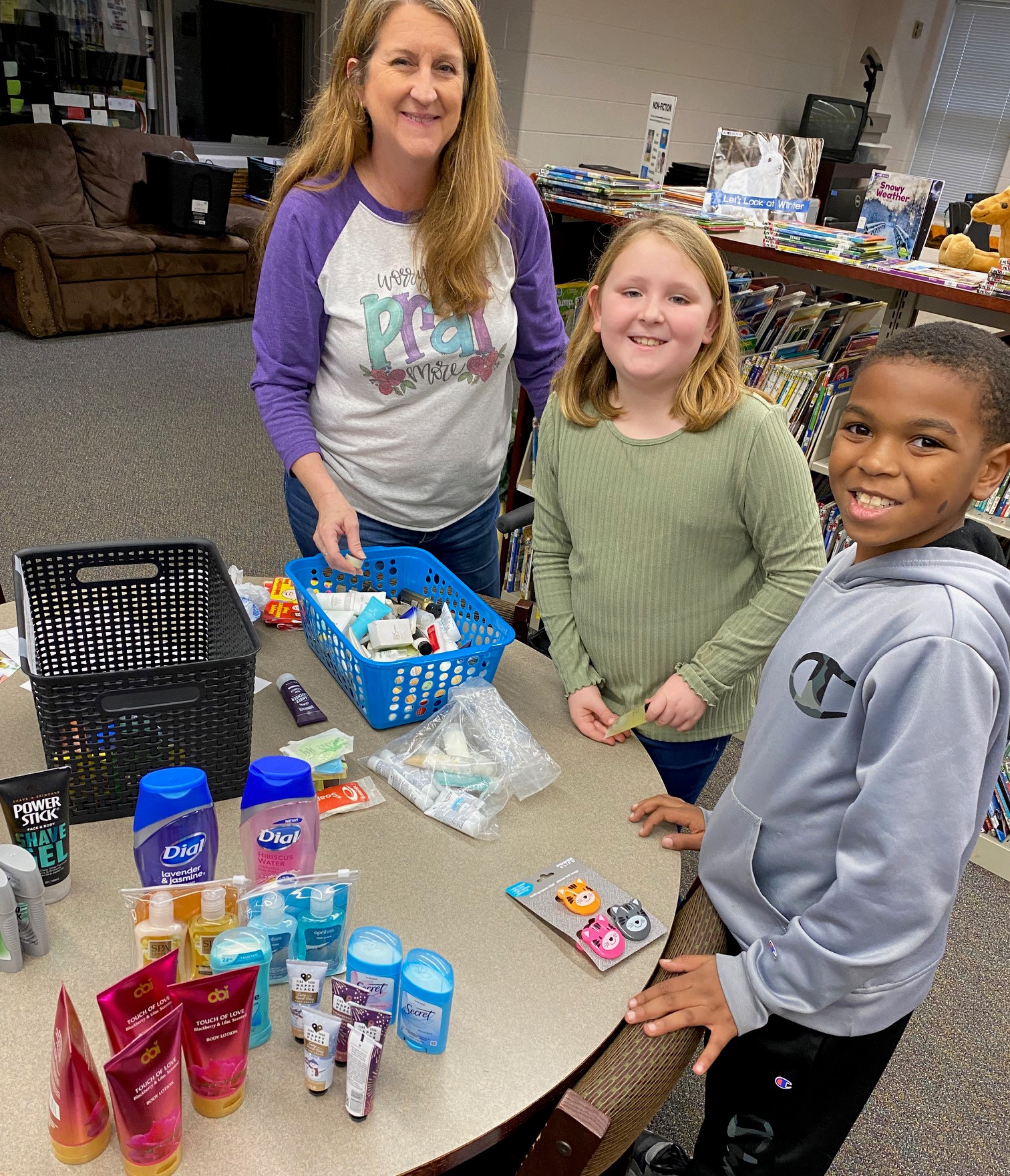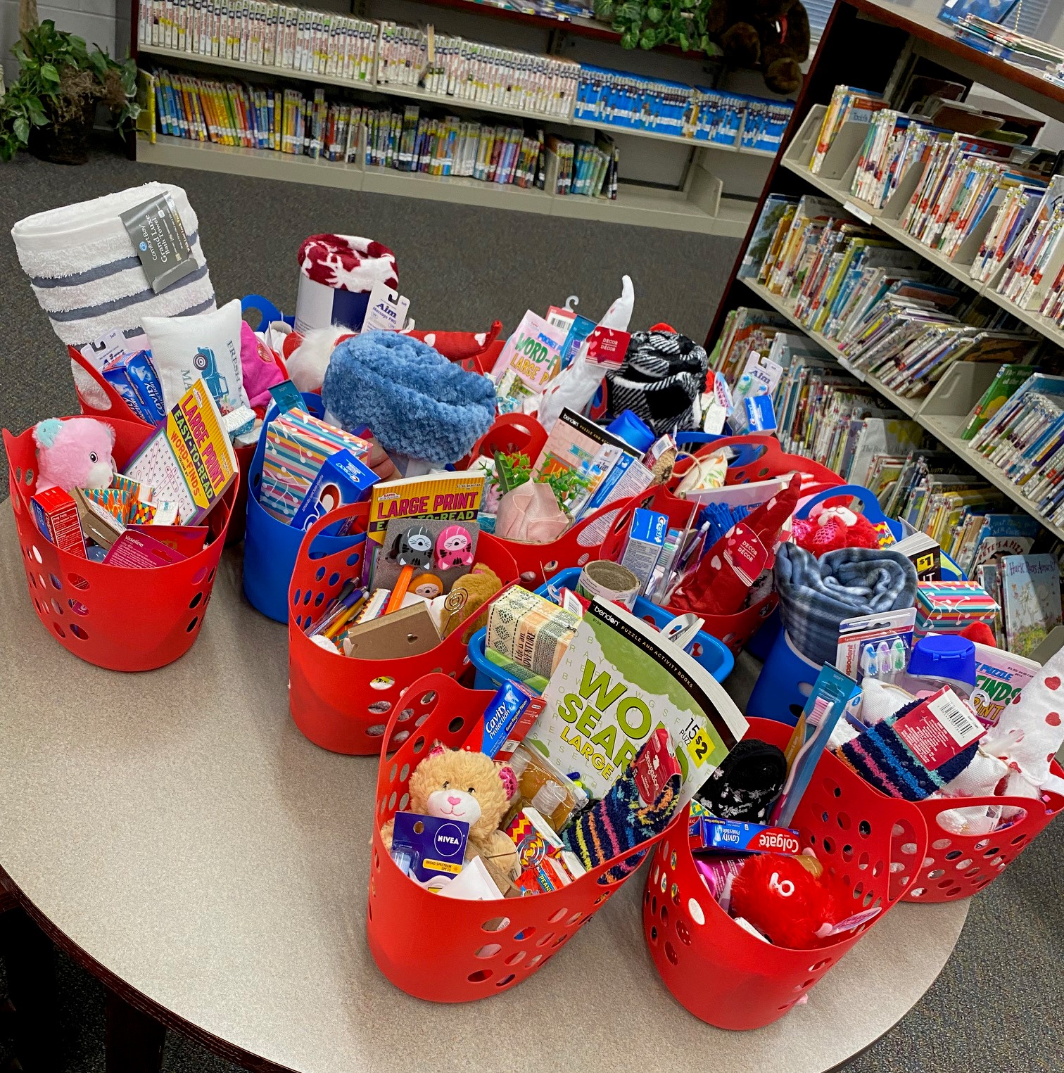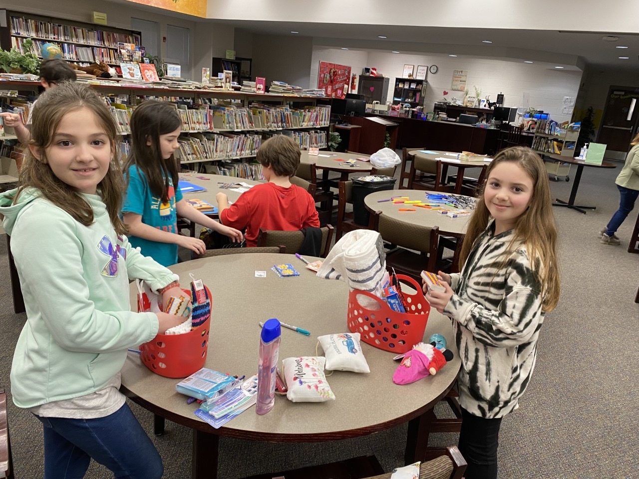 During the month of January, 2022 the Library Club at Airport Road Intermediate School sponsored a service project. The library club is made up of eight students and two sponsors. The students were collecting items needed to make Valentine gift baskets for Assisted Living and Nursing Home residents. A list of needed items was given to all students in the beginning of January to homeroom teachers and a list was posted outside the library door as well.