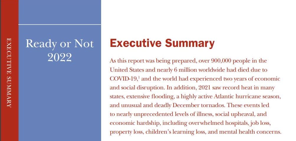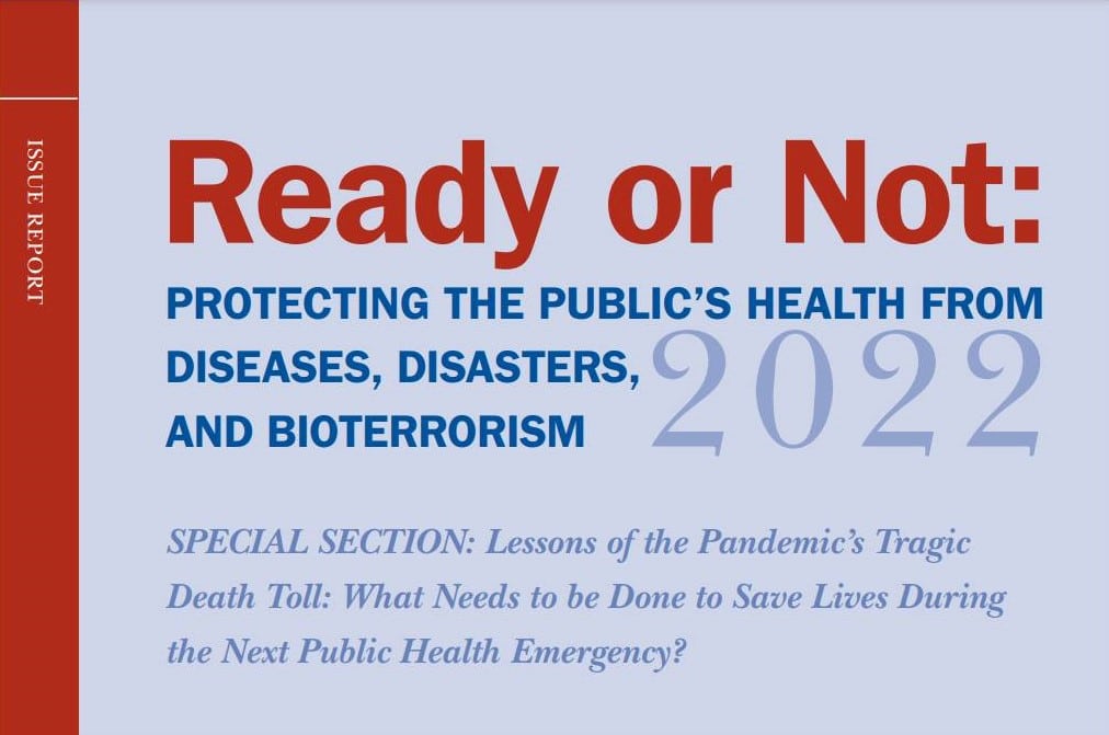 Trust for America’s Health is a nonprofit, non-partisan health policy advocacy organization which focuses on addressing the social determinants of health and correcting health inequities. The full report may be viewed at https://www.tfah.org/wp-content/uploads/2022/03/2022_ReadyOrNot_Fnl.pdf