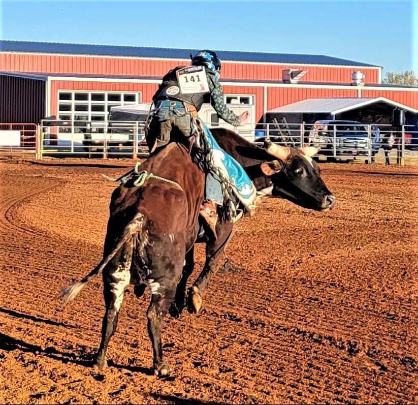 These young men enjoy the thrill of participating in each of their events and have a passion for the rodeo, even knowing the dangers with each ride. James Glenn was not riding this weekend due to an injury to his leg during a ride back in December that required surgery. Even though he is still rehabbing, he attended to assist the operations and support his rodeo peers. Reed Long, has also experienced a severe injury early in his rodeo career, that started three years ago according to his dad and Mom Long, as the boys affectionally called her. His Dad said even with the surgery and rehab; Reed came back strong in first competition in Oklahoma.