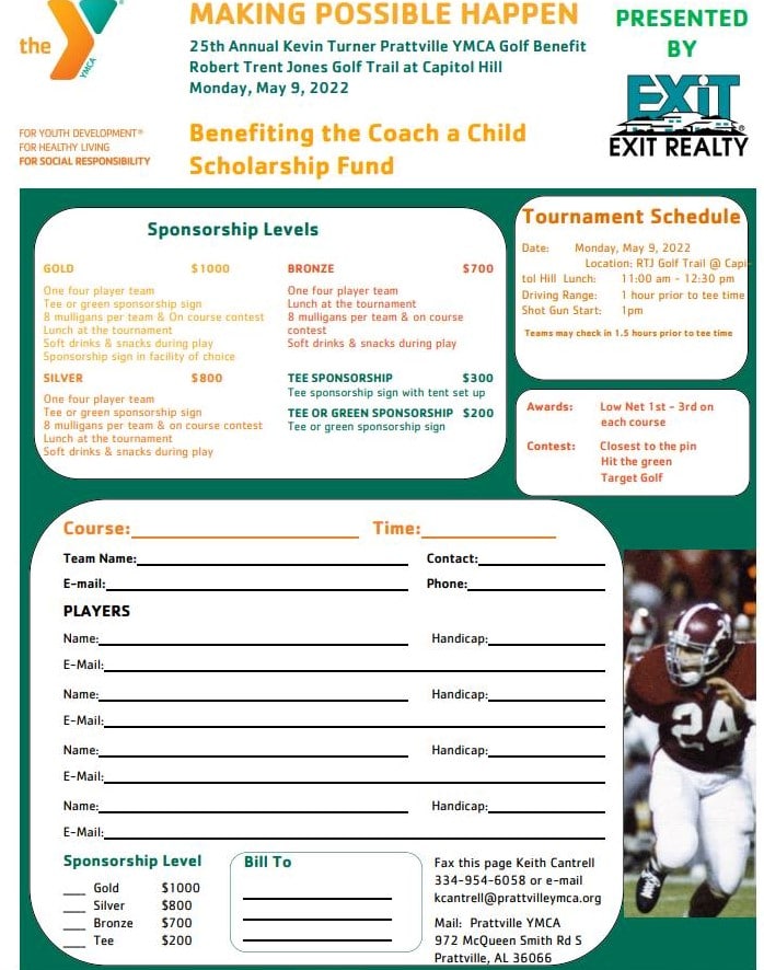 The proceeds from the tournament help fund the Coach A Child Scholarship Fund Campaign which provides financial aid to make YMCA services available to all persons regardless of their inability to pay. The golf tournament is in its seventh year at RTJ Capitol Hill after spending the first 18 years at the Prattville Country Club.