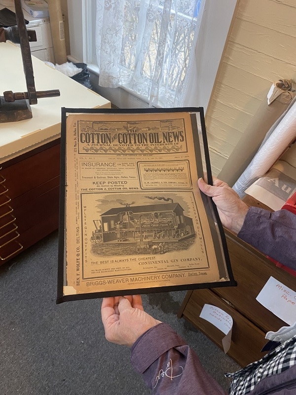 Even though there are fewer volunteers these days, two of the projects currently underway are the cataloging of over 1,000 pieces of advertising that spans from 1800 to 2012. Also being sorted are employee time cards from the 1900’s that a volunteer is working on putting into an Excel spreadsheet.