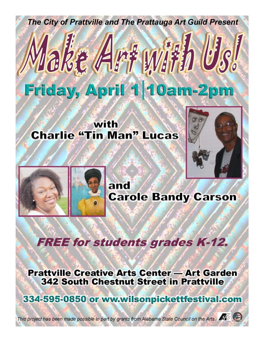 Looking for something fun for Spring Break? The City of Prattville and the Prattauga Art Guild will host a FREE student art workshop on Friday, April 1, at the Prattville Creative Arts Center. This special art workshop will feature Charlie “Tin Man” Lucas and Carole Bandy Carson as instructors.