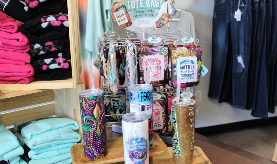 One of the things the women are especially proud of is the fact that they use local vendors whenever possible. Miranda Jones of Marbury creates graphics for tumblers and graphic t-shirts.  Mackenzie Elizabeth Designs of Millbrook creates sweatshirt and t-shirt designs. Jessica Smith of Deatsville hand paints air fresheners. All of our candles are poured by Christy Dell’Aria with Dell’Aria Candle Company out of Wetumpka, including their Exclusive Lotus & Luna Candles, Room Sprays and Wax Melts. Laura Spencer from Marion Junction, AL makes their lotions and soaps in their exclusive scents.