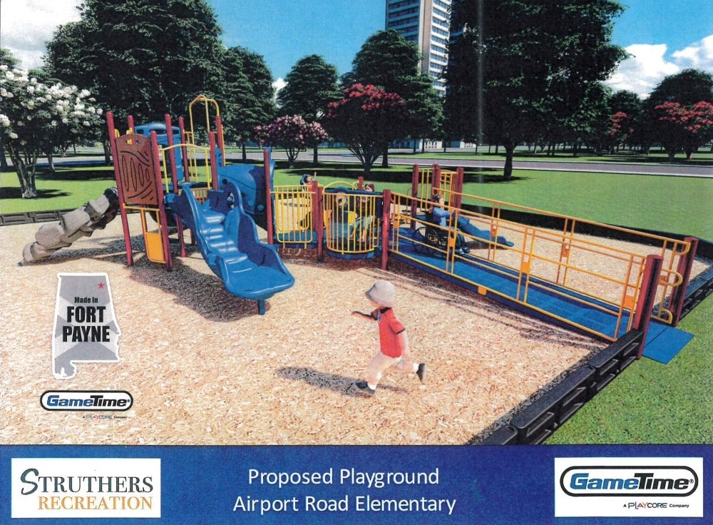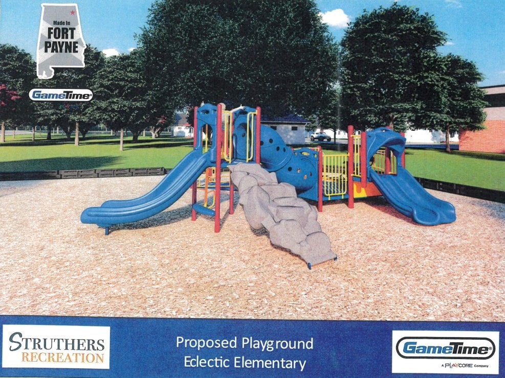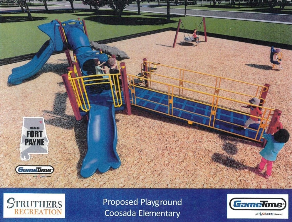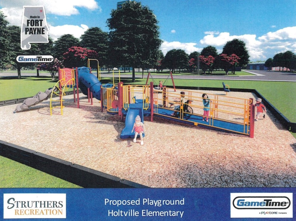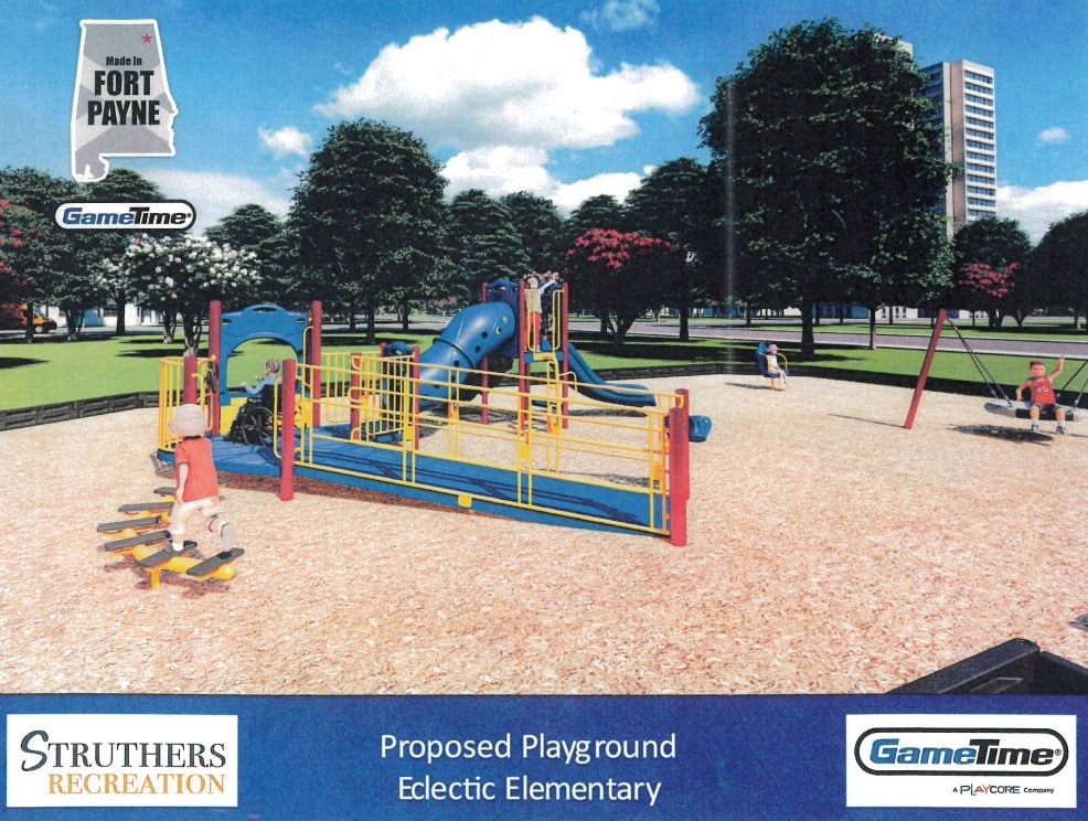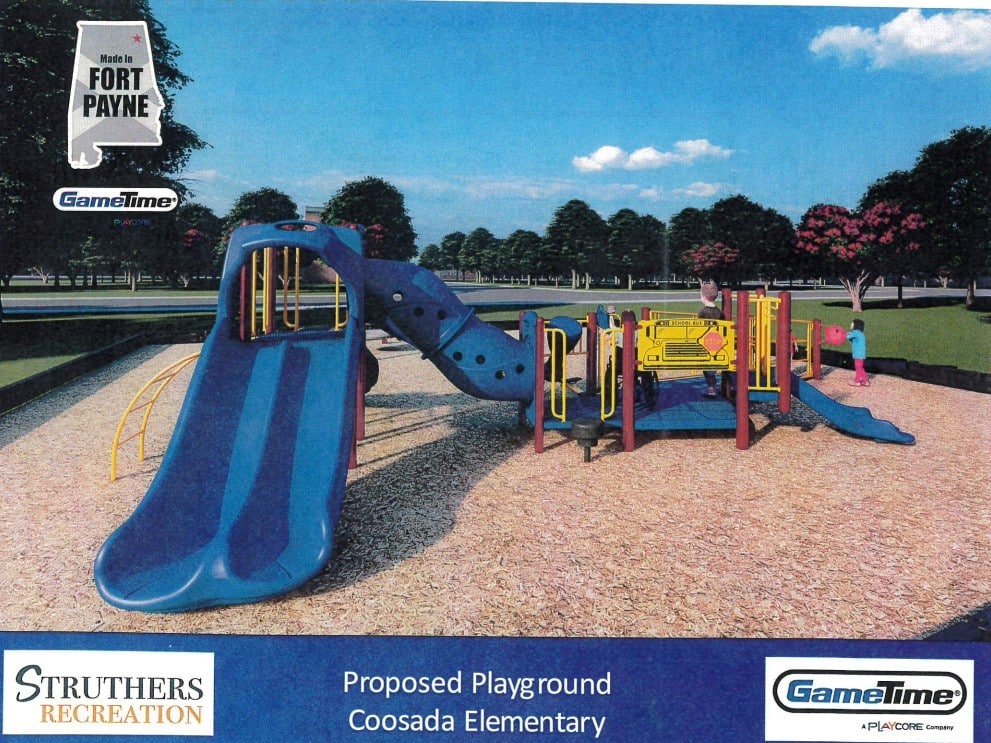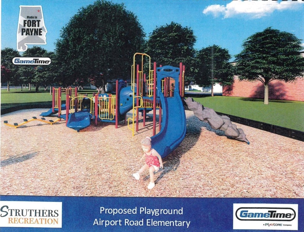 Mann said the school system was allocated a federal American Recovery Plan (ARP) IDEA grant of $500,000 and $343,055 of this money was allocated for the playground project. An additional $138,775 from remaining Alabama Technical Education Funds will be used to buy shade structures for the playgrounds called Hip Shades. Struthers Recreation, which makes GameTime equipment in Fort Payne, will be constructing the playgrounds.
