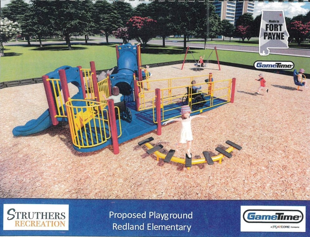 Schools that will have new adaptive playgrounds include Eclectic Elementary School, Redland Elementary School, Holtville Elementary School, Airport Road Intermediate School, Coosada Elementary School, and Wetumpka Elementary School.