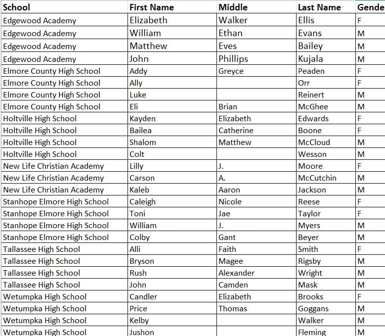 WETUMPKA , AL – The Board of Directors of the Joe Sewell Memorial Award and John Sewell Memorial Scholarship have released the names of its 2022 Senior Finalists.