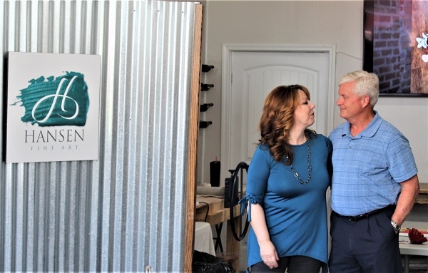 Top Photo: Julianne and Steve Hansen celebrated the expansion of her fine art and pottery studio Tuesday morning.