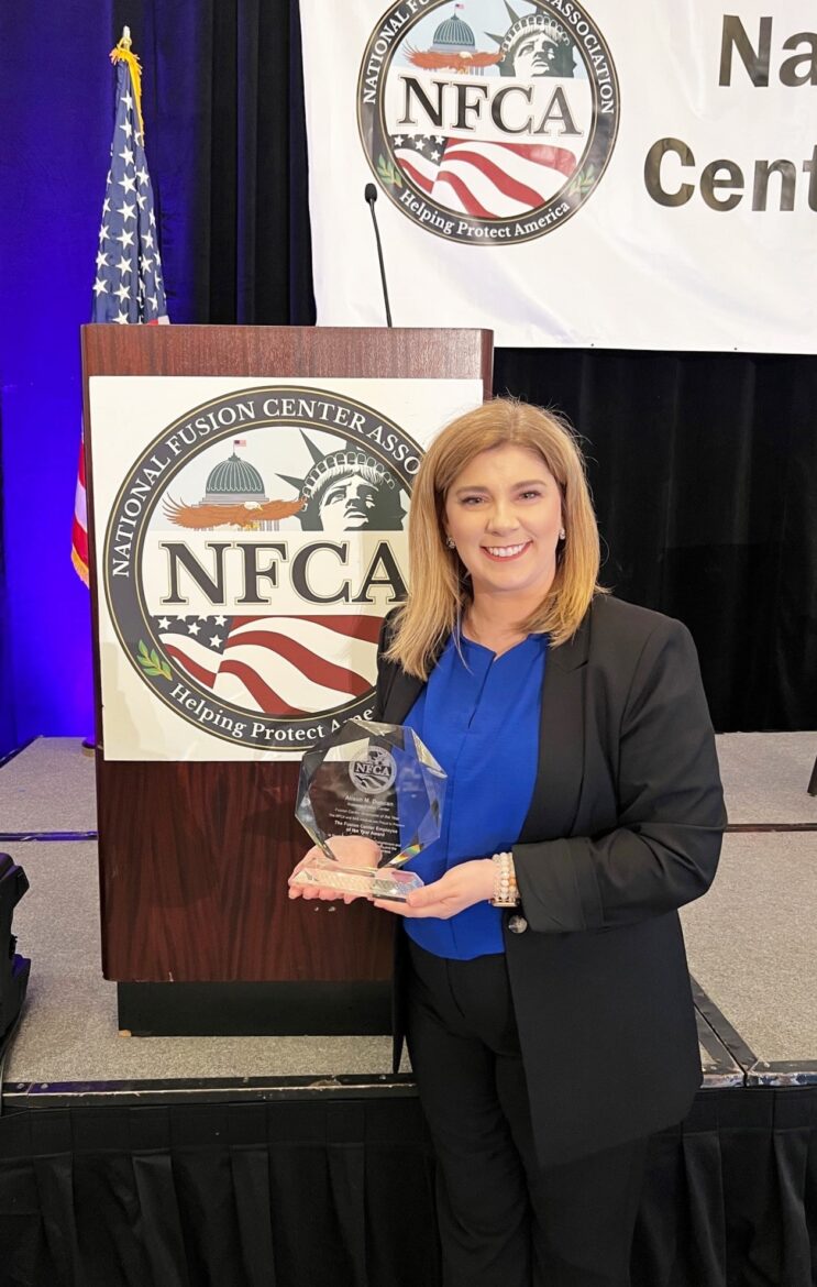 AFC Director and NFCA Vice President Jay Moseley agreed and said, “We are extremely proud to have Alison in our center, and no one deserves this award more than she does. Intelligence Analysts are the backbone of every fusion center, and they are the ones working hard every day to keep our nation and our state safe. Alison is a true leader and is passionate about her job.”