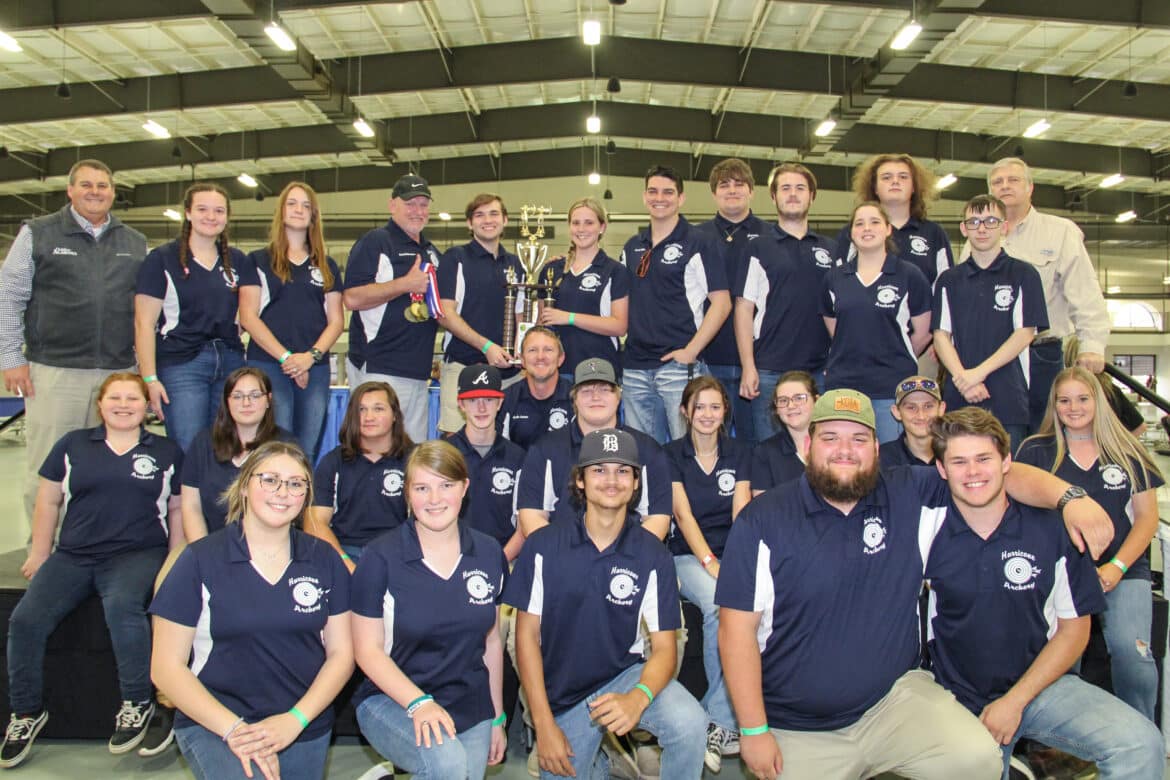TOP PHOTO: Photo by Cody Eason, ADCNR – ADCNR Commissioner Chris Blankenship (left) and National Wild Turkey Federation State Chapter President Craig Scruggs (back row, right) with the Alma Bryant Hurricanes Archery Team who took first place in the high school division of the 2022 NASP Alabama State Championship.