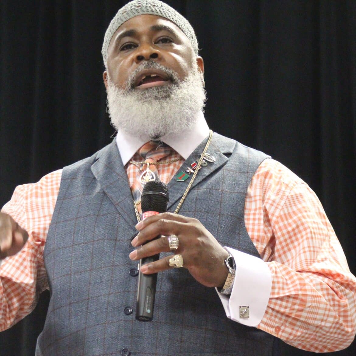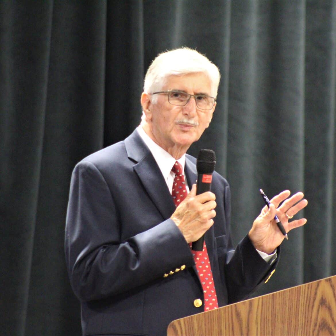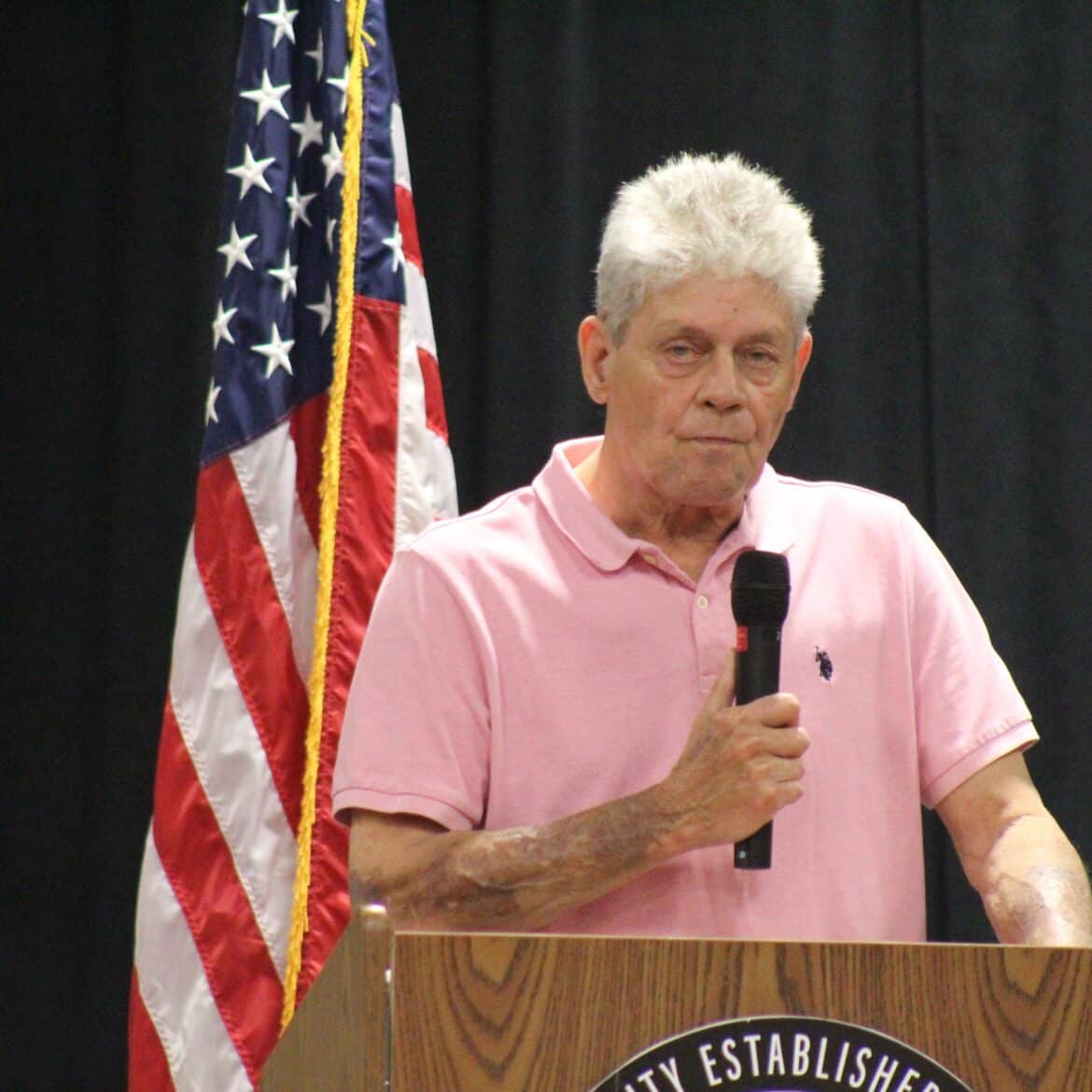 Ell White II gave his qualifications from the stage, saying, “I am a retired Army Major. The military gave me the opportunity to go to school.”