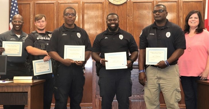 Probate Judge Kim Kervin, who helped to recognize the officers at the meeting, said that 12 officers have completed various training programs related to the field of mental illness.