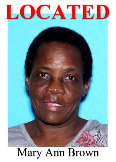 The Lowndes County Sheriff’s Office has officially notified CrimeStoppers that Missing Person Mary Ann Brown is no longer listed as a Missing Person.