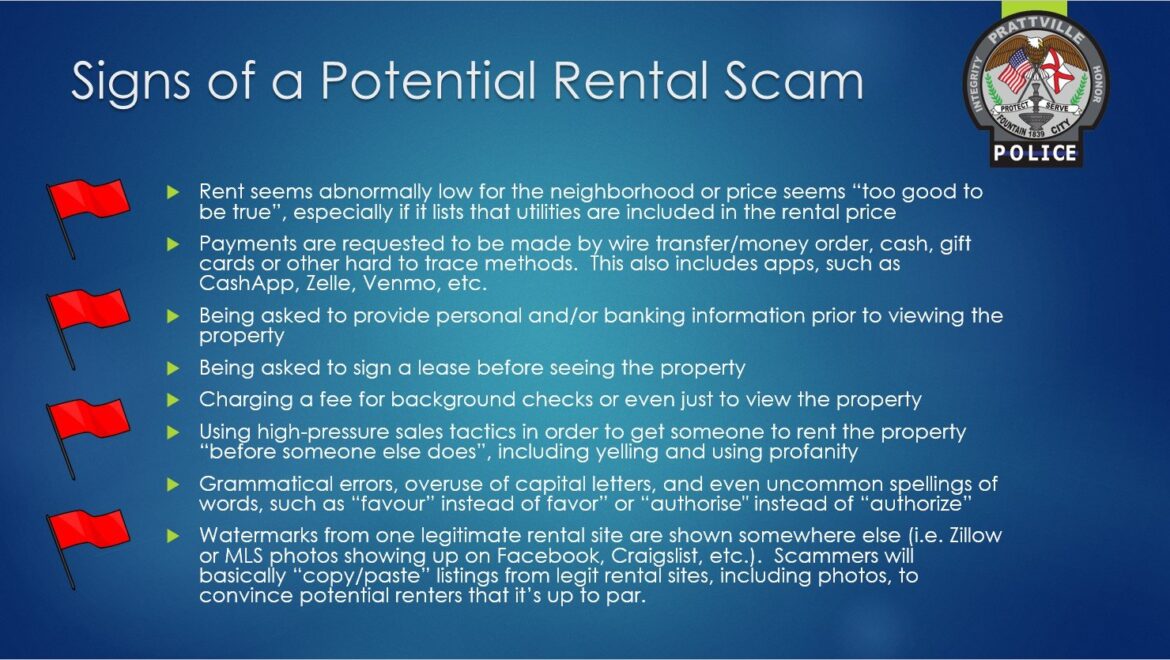 Prattville Police Department Offers Tips to Avoid Rental Scams