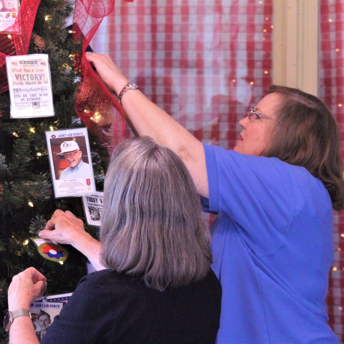A few days ago, the group took down the current tree, “Honoring WWII Veterans with Branches and Roots in our Community,” to create a new focus on the historical roots of the American flag.