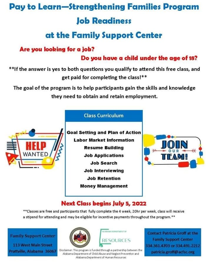 FREE Job Readiness Class begins in Prattville July 5; Qualified can be Paid for Completion June 27, 2022